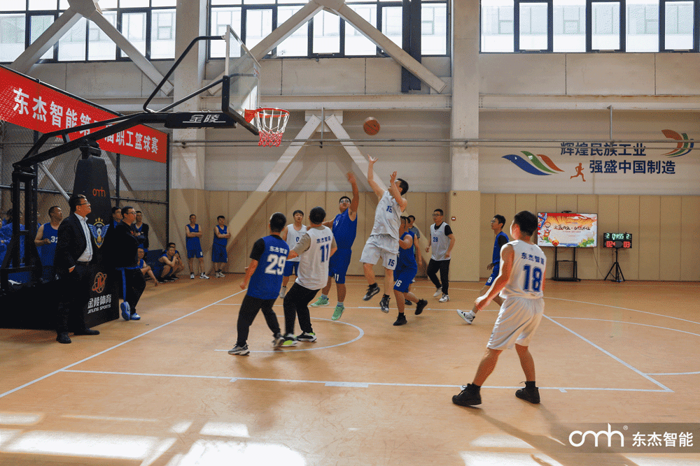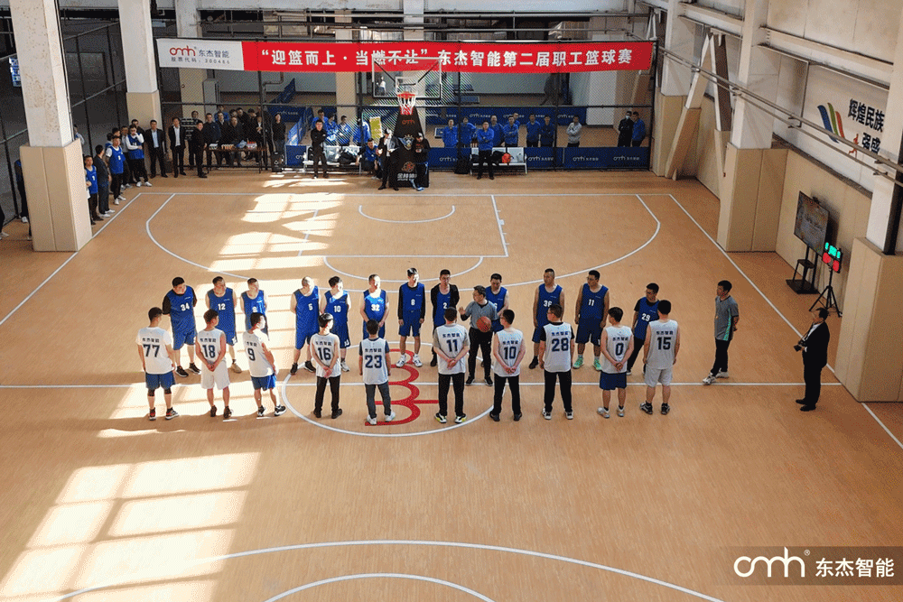 随着裁判长一声哨响,篮球被高高抛向空中,东杰智能第二届职工篮球赛正式开赛。现场顿时响起热烈的掌声和欢呼声,气氛瞬间达到高潮。双方中锋同时起跳争球,比赛在激烈的对抗中拉开序幕。